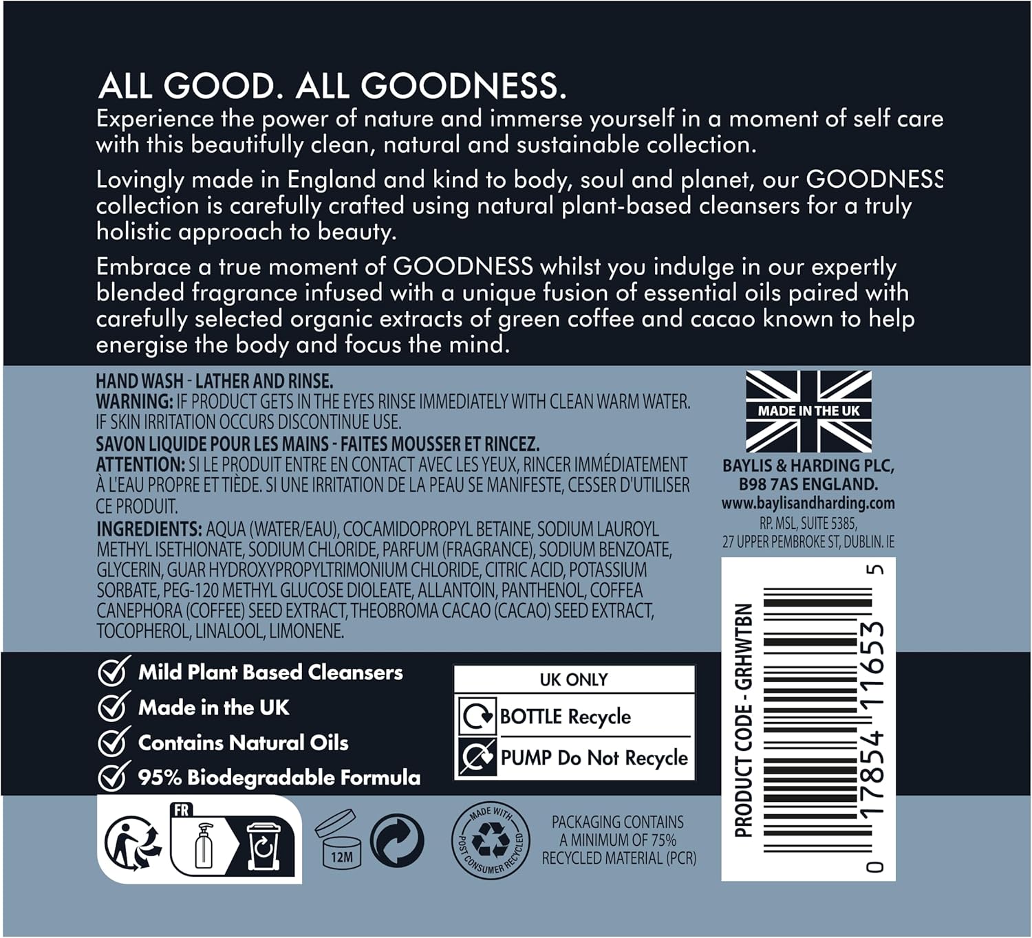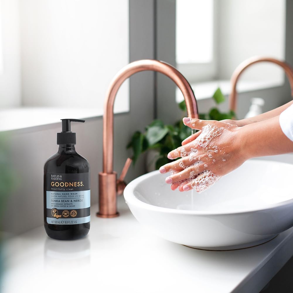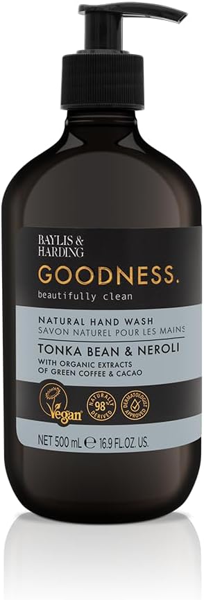 غسول اليدين الطبيعي بايليس آند هاردينج جودنيس 500 مل – فول التونكا وزهر البرتقال | صابون نباتي مرطب لليدين للبشرة الحساسة | محمل بالقهوة الخضراء العضوية ومستخلصات الكاكاو