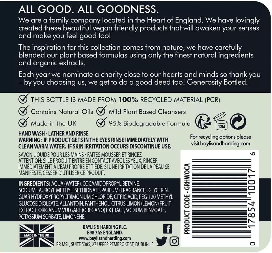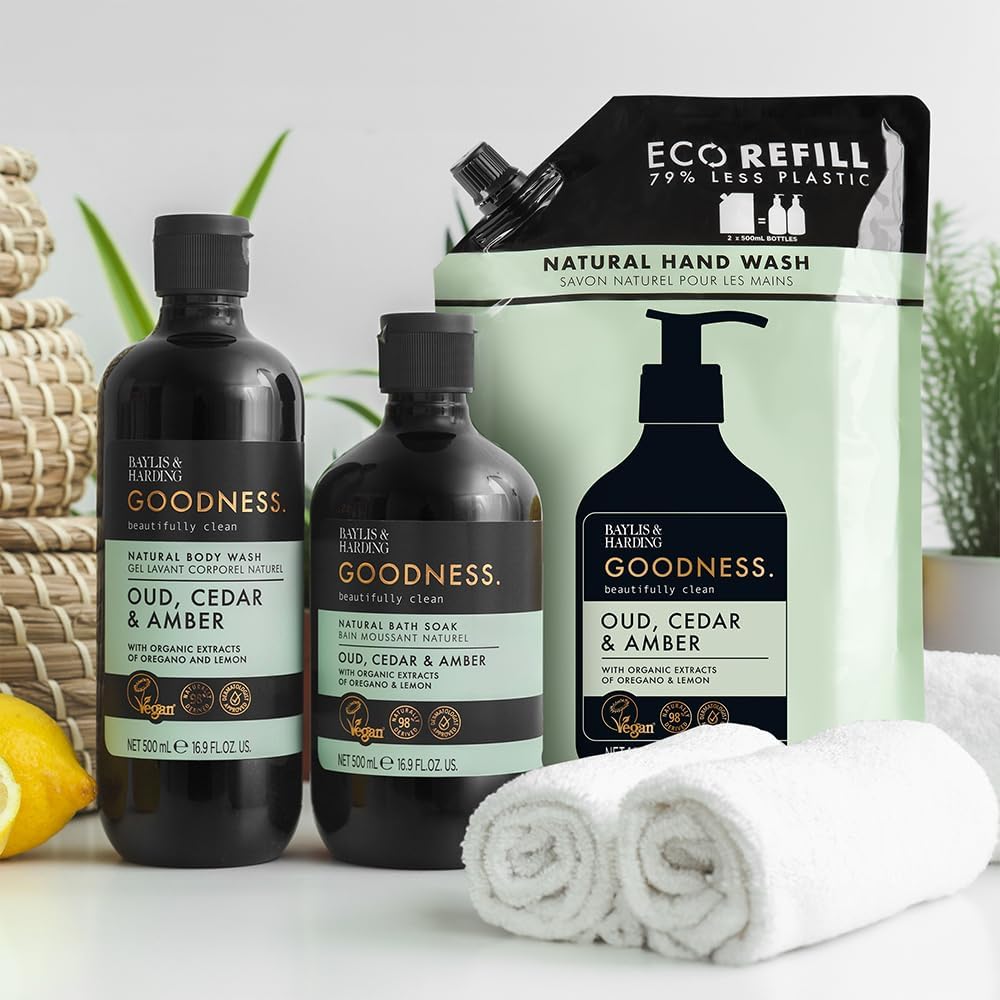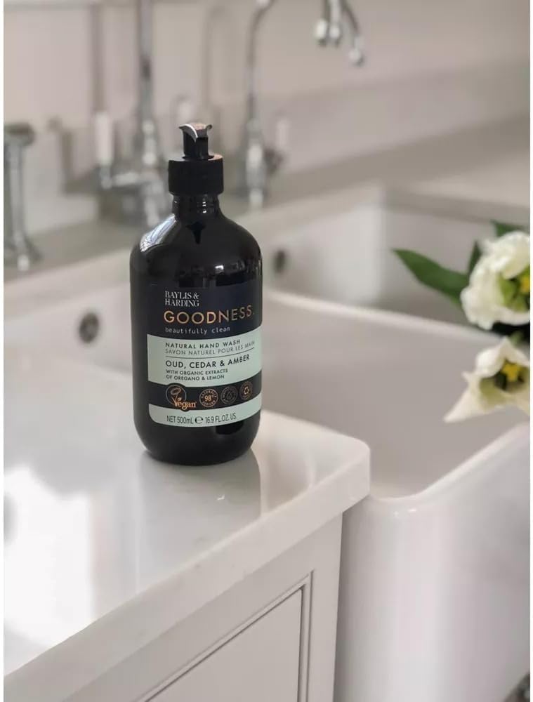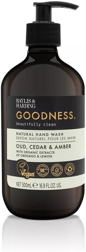 غسول لليدين بايليس آند هاردينج جودنيس بالعود والأرز والعنبر، 500 مل | تركيبة طبيعية بمستخلصات عضوية | عطر فاخر | تنظيف لطيف | خالي من البارابين | نباتي
