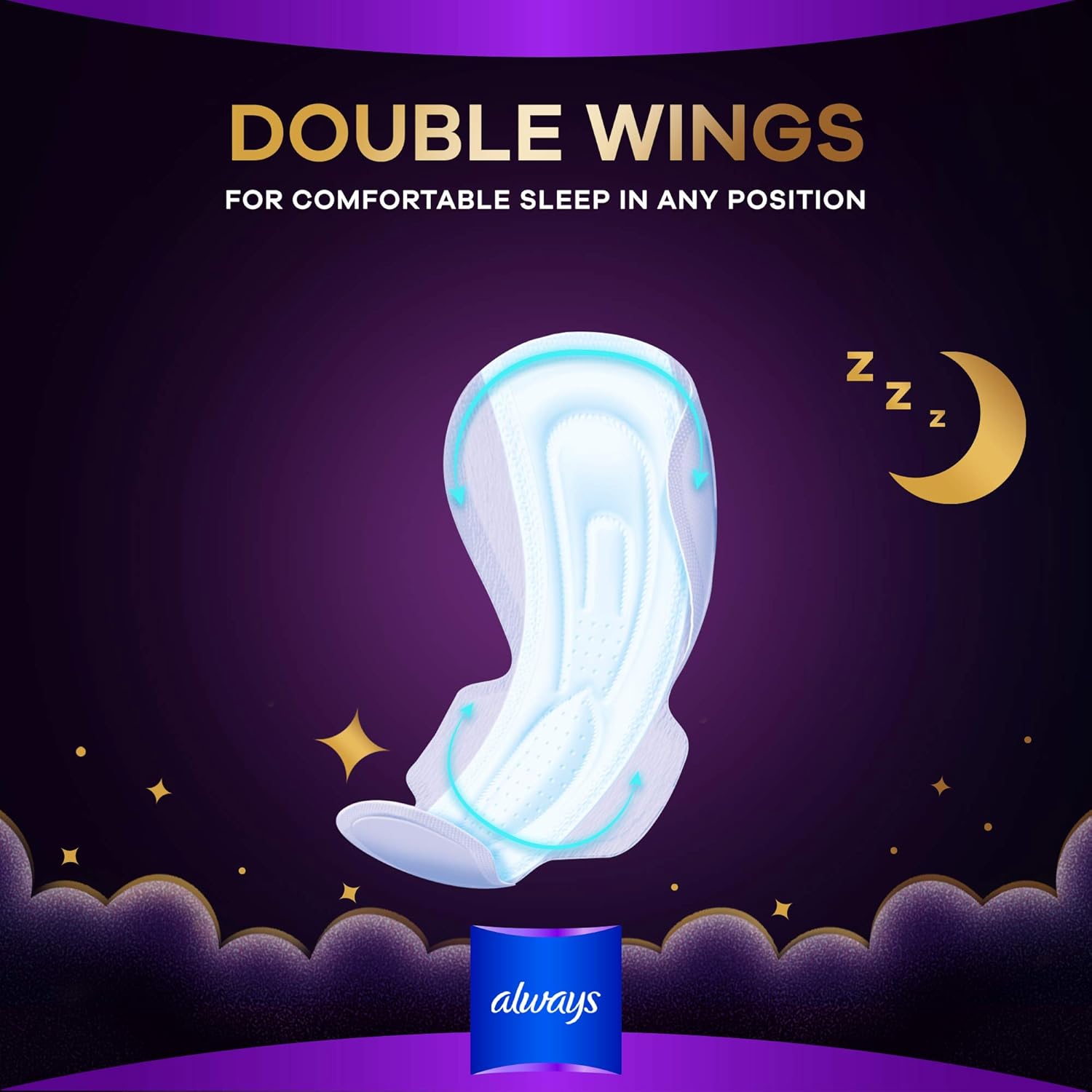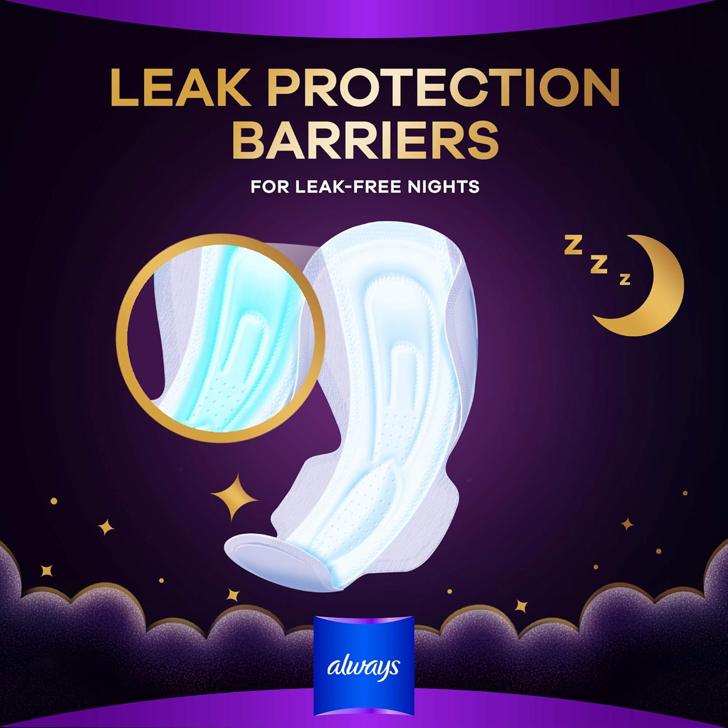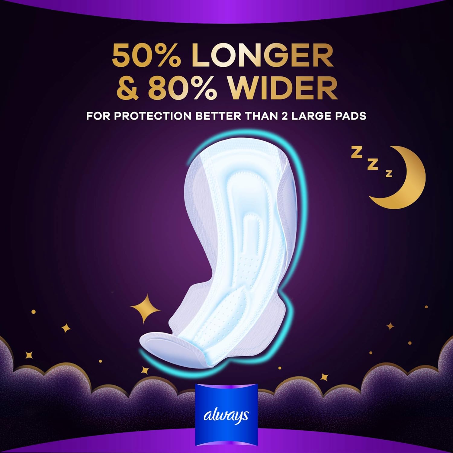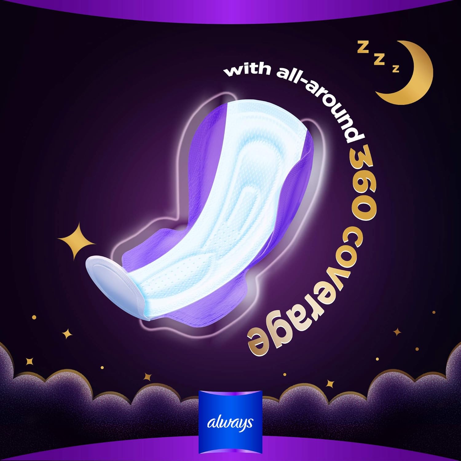 تقدم وسادة Always Dreamzz تجربة نوم مريحة خلال الدورة الشهرية. تتميز بتصميم يضمن حماية شاملة بزاوية 360 درجة، مما يساعد في منع التسرب. الوسادة مصنوعة من مواد عالية الجودة، مما يجعلها خياراً موثوقاً للاستخدام الليلي. تأتي بحجم أكبر مع أجنحة مزدوجة لتوفير دعم إضافي.