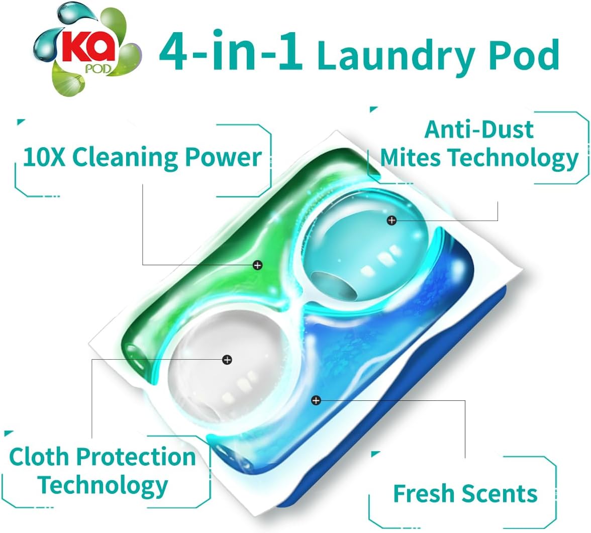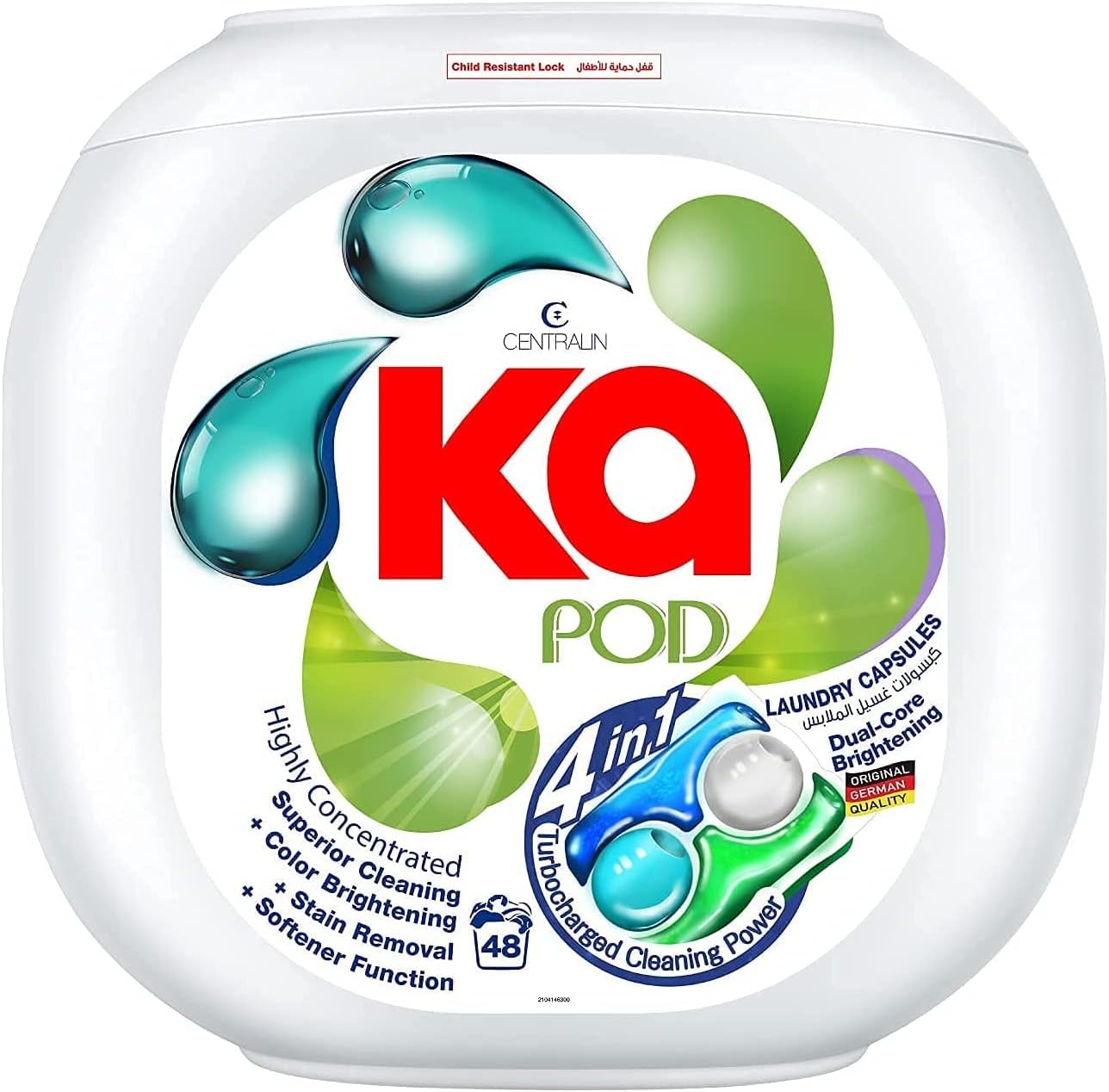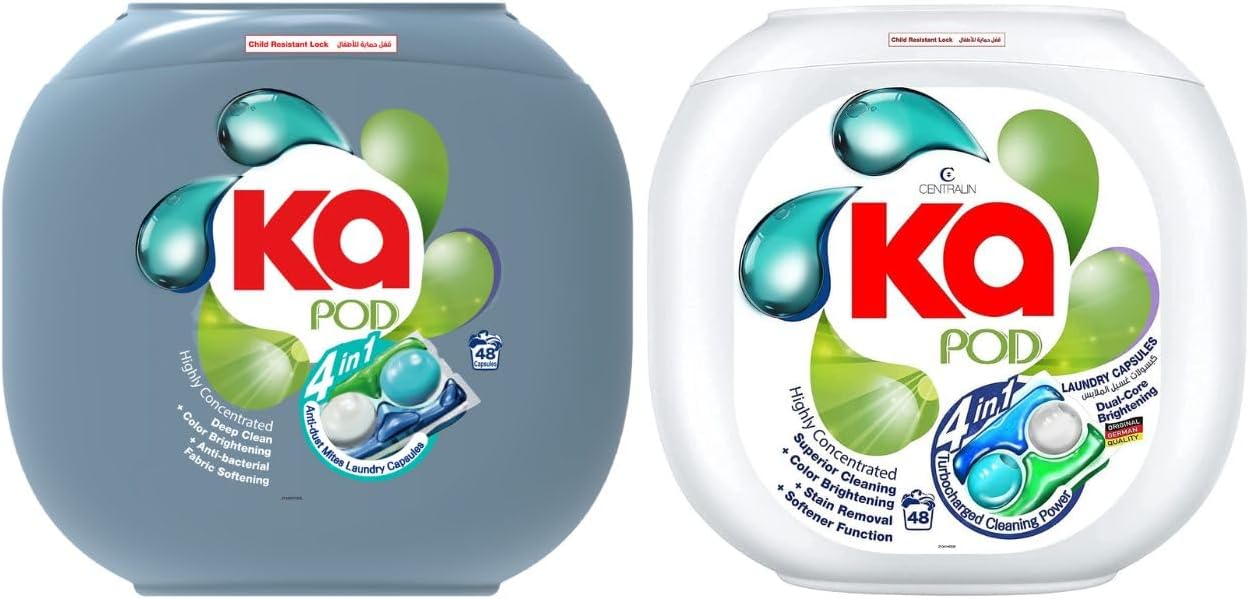مجموعة كبسولات منظفات الغسيل 4 في 1 من كيه إيه (96 كبسولة) – مكافحة عث الغبار، التنظيف العميق، تنعيم الأقمشة، تفتيح الألوان، 99.9% مضاد للبكتيريا، مزيل قوي للبقع، تركيبة ألمانية، رائحة أصلية